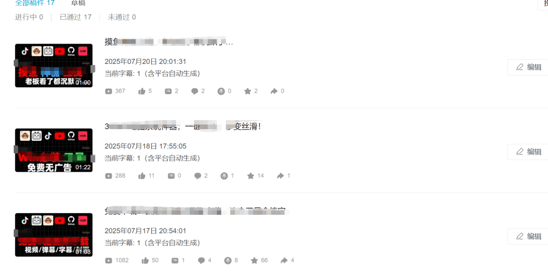 整体的操作思路也很简单,就是一条视频做好之后,全平台分发一遍,反正都是顺手的事,多发一个平台也花不了多少时间。